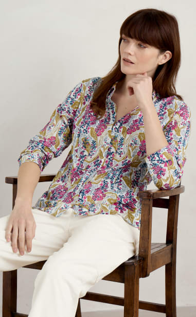 A new collection of relaxed shapes, joyful colours and light layers. Made for warmer days ahead.As spring comes to Cornwall, easy silhouettes are coloured by the season’s neutrals: cloud whites and hazy blues taken straight from a mackerel sky. Vibrant prints and breezy linen lend a softer touch to workwear-inspired styles. Lightweight knits are key, adding texture to outfits on days when the air is crisp, but the sun is shining.