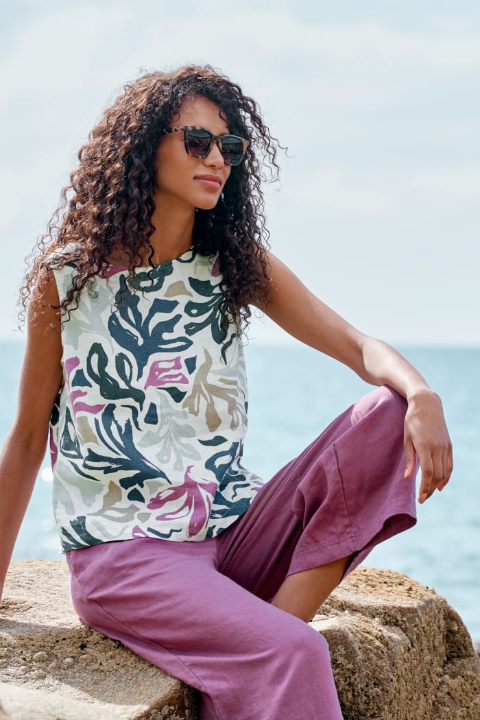 Laura’s favourite outfit for summer starts with a versatile top. The linen-cotton Gwynver, brings easy-to wear colours together in its stripes. Pair with linen culottes or cotton twill shorts, matched with hues from the top’s generous palette. https://www.seasaltcornwall.com/clothing/linen-clothing