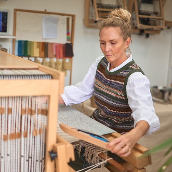 We visit Ellie and Claudia at the ELKA studio, where weaving and natural dyeing are a gateway to wellbeing.Ellie, a weaver, and her mum, Claudia, a natural dyer, run ELKA Textiles from their base in Hampshire. As well as selling their handwoven and naturally dyed pieces, they run in-person workshops and online courses to share their skills.