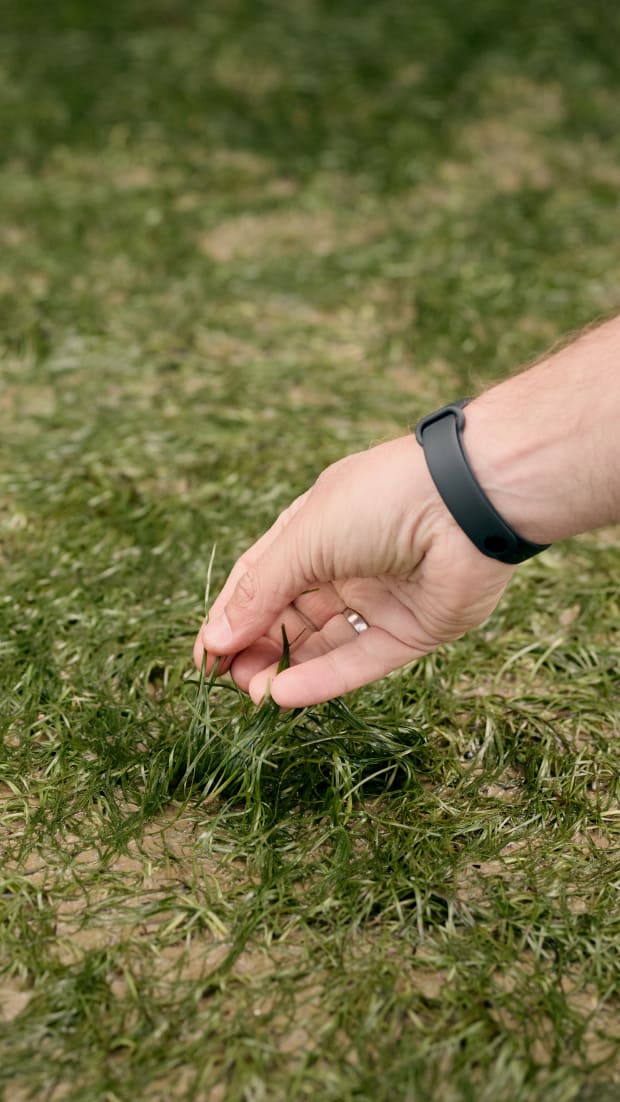 “We plant the seed-filled hessian bags a metre apart. The reason we do this is because hopefully when the seeds establish, the roots and the rhizomes will spread across a metre and should start to connect with one another to form a meadow.”