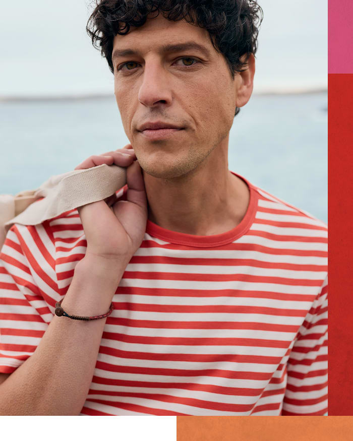 For our menswear collection, we’ve kept the cuts simple and the fabrics breathable. Garment-dyed linen and worn-in textures are our go-to for warm days by the coast. Utility jackets and casual sweatshirts add warmth when the sun goes down.