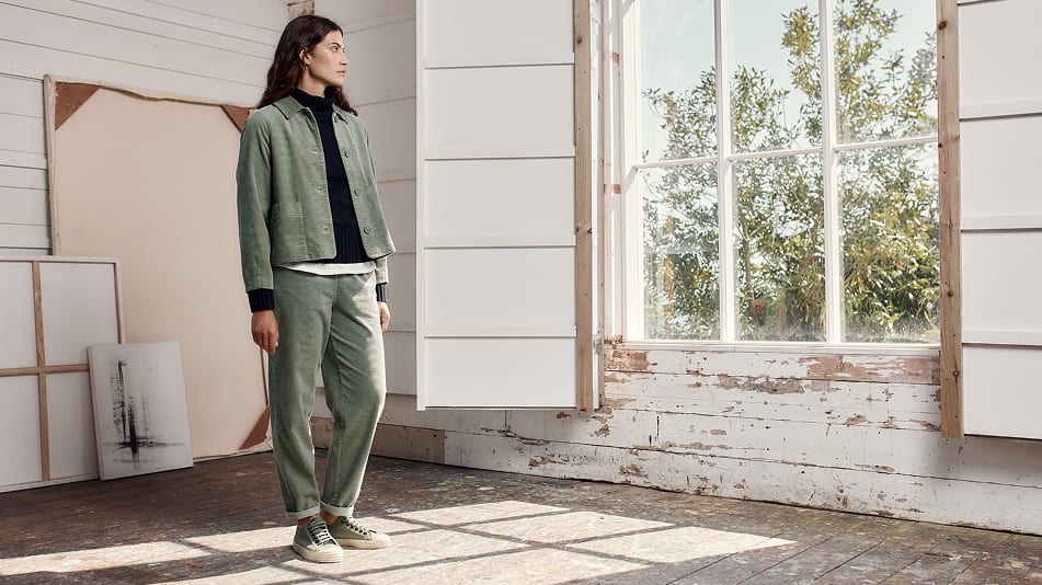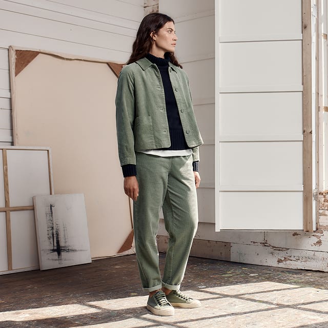 An enduring wardrobe staple, woven for a soft, rippled texture that gives seasonal tones new depth. Originally crafted for its durability, the Cornish artists of the late 20th century adopted corduroy for long days in the studio. Today, the fabric has become synonymous with autumn, becoming the perfect canvas for a sweep of rich, transitional colours each year.
