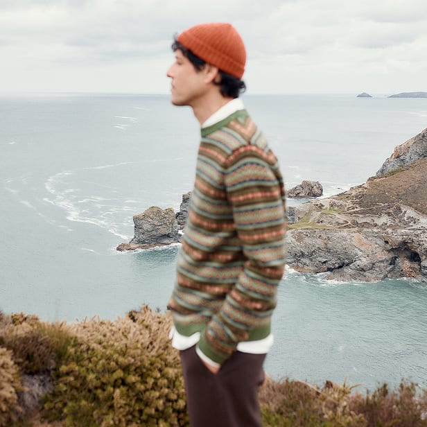 Deep forest greens and earthen reds weave their way through the collection, rendered in yarn-dyed checks and Fair Isle knits. Designed to be loved and layered as the leaves change and the seasons shift, embrace the drama of Cornwall’s windswept landscape with a wardrobe of transitional pieces.