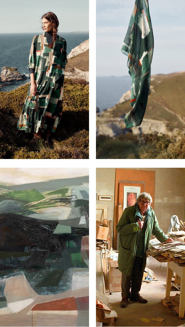 The palette was informed by the changing colours of Cornwall’s landscape, and the way that local artists interpret this yearly shift on canvas. In the studio, we were particularly inspired by John Wells, who used abstract forms and sweeping brush strokes to give his paintings a sense of energy and movement.
