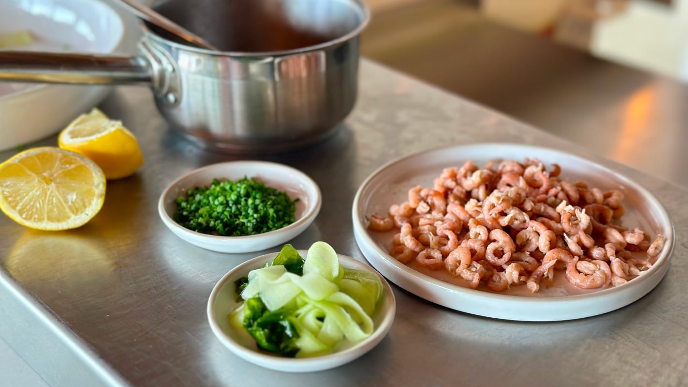 - Add the spices and finely grated zest of half the lemon to the butter. Allow it to infuse for 10 minutes before adding the shrimp.